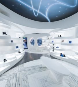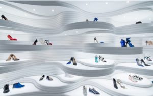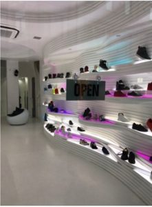 Bij het ontwerp zijn Amerikaanse canyons de inspiratiebron geweest. De eigenaar van het ontwerpbureau verklaart daarover: “Het uitgangspunt is geweest: een moderne canyon, met ribben die als één vloeiende beweging, de hele ruimte omvattend, over de wanden de volledige ruimte vormgeven en de schappen vormen, waarop de schoenen geëtaleerd worden”.